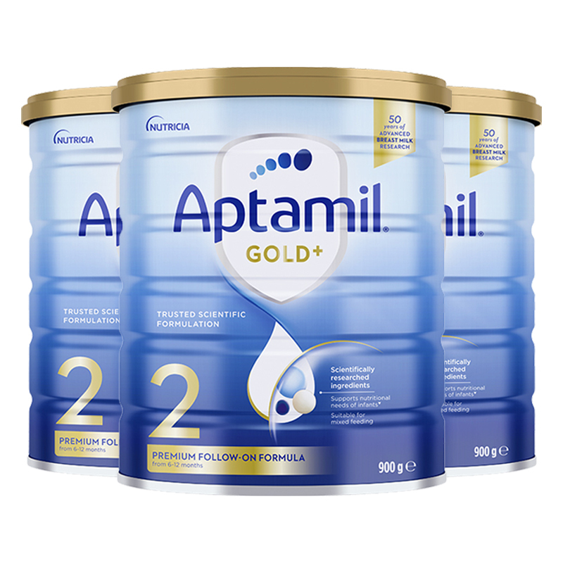 有效期到25年7月-3罐装 | Aptamil 澳洲爱他美 金装版 2段 婴幼儿配方奶粉 (6-12个月)900g