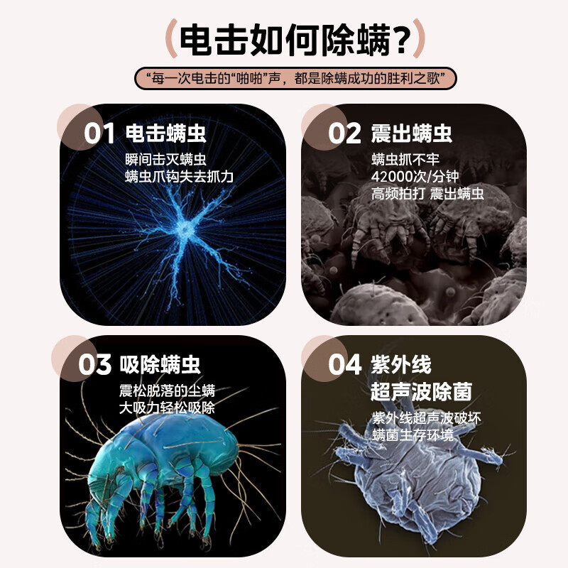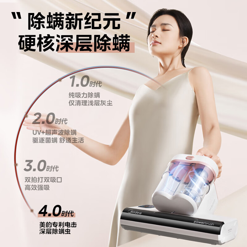 当季新品 美的(Midea)除螨仪MX6 电击大吸力除螨超声波除螨紫外线杀菌床上吸尘器杀菌除螨率99.9%