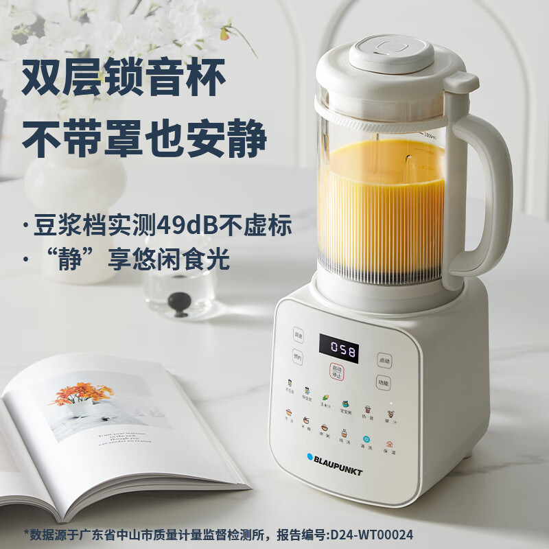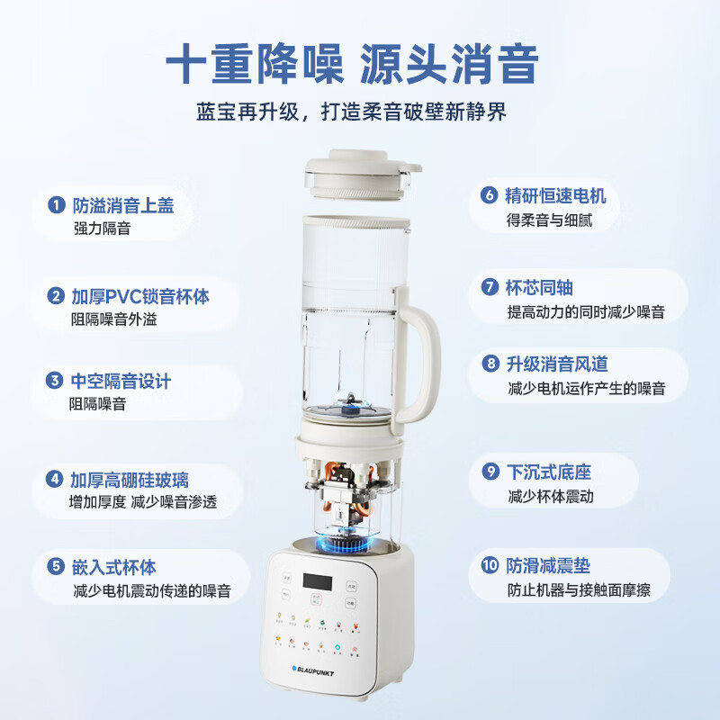 蓝宝(BLAUPUNKT)柔音破壁机可拆洗家用3-6人豆浆机双层轻量杯降噪49分贝五谷杂粮料理辅食榨汁机早餐机PBC06