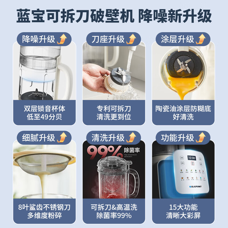 商品名称:蓝宝(BLAUPUNKT)柔音破壁机可拆洗家用3-6人豆浆机双层轻量杯降噪49分贝五谷杂粮料理辅食榨汁机早餐机PBC06